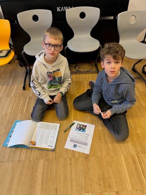 Zu Beginn durfte jedes Zweierteam ein Buch aus dem Koffer auswählen - natürlich ein Buch, das sie besonders interessierte. Die Themen waren vielfältig: von Tieren über Naturphänomene bis hinzu Technik und Geschichte. Anschließend erarbeiteten die Teams gemeinsam die Fragen, die zu ihrem Buch gestellt wurden, und suchten die passenden Antworten heraus.